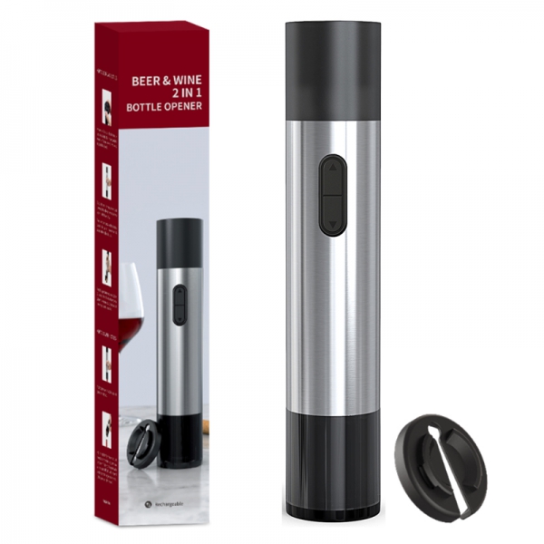 *2 in 1 Design: one side is electric wine opener, another side is beer opener