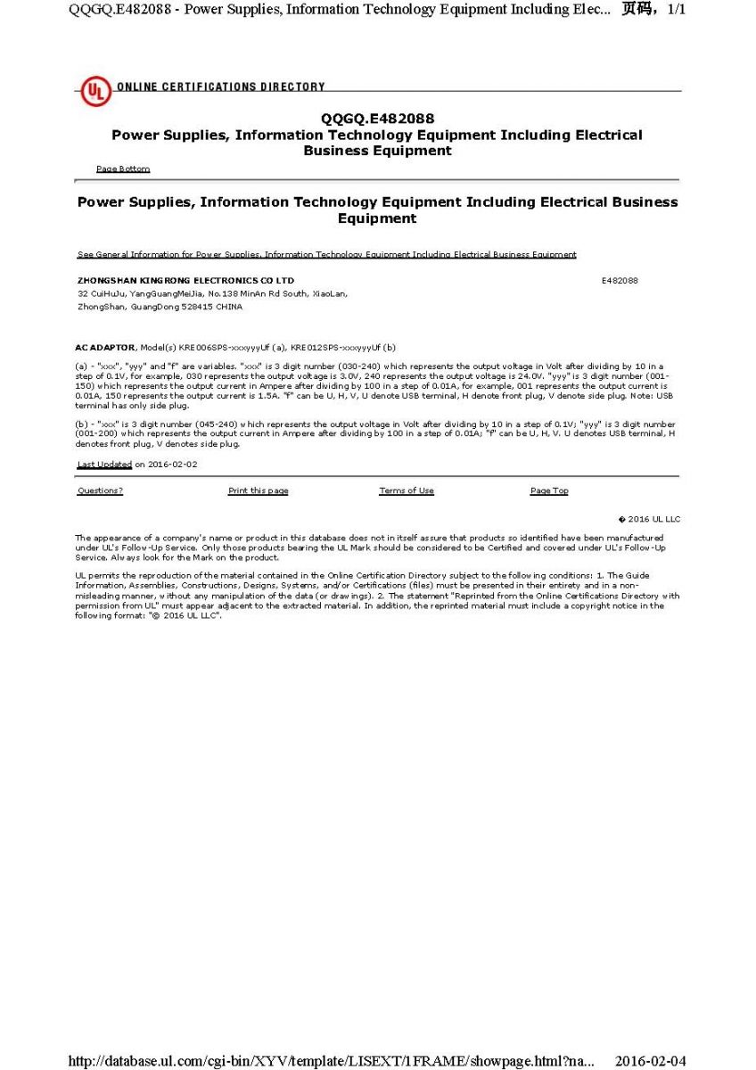 6W, 12W, 24W, 36W adapters have been certificated by UL.